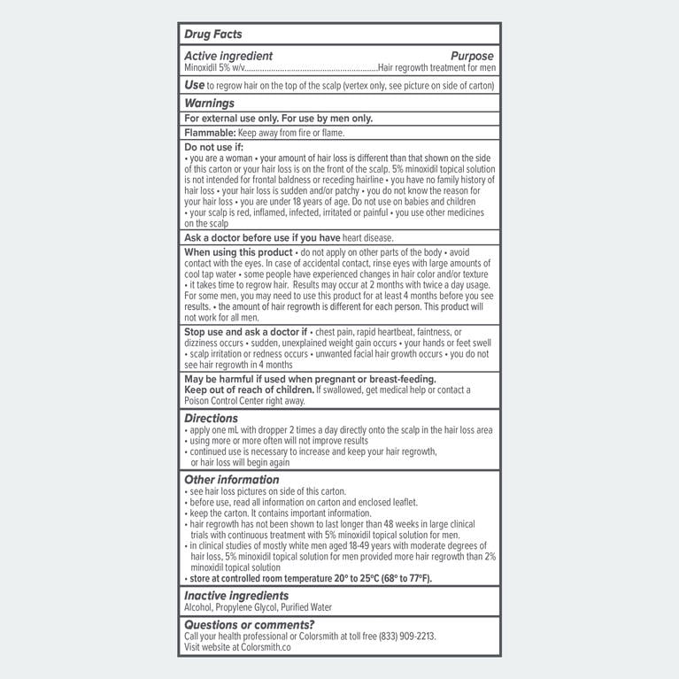 To see results, you need to use Colorsmith Hair Regrowth Treatment twice a day for at least 3-6 months. To maintain your results, you will need to continue to apply this product.