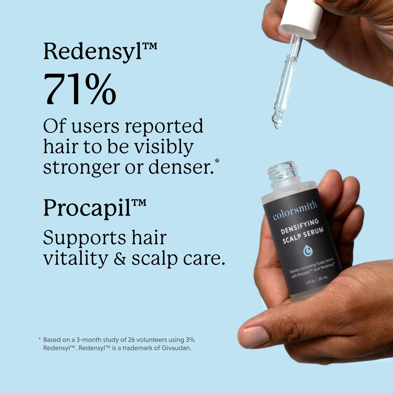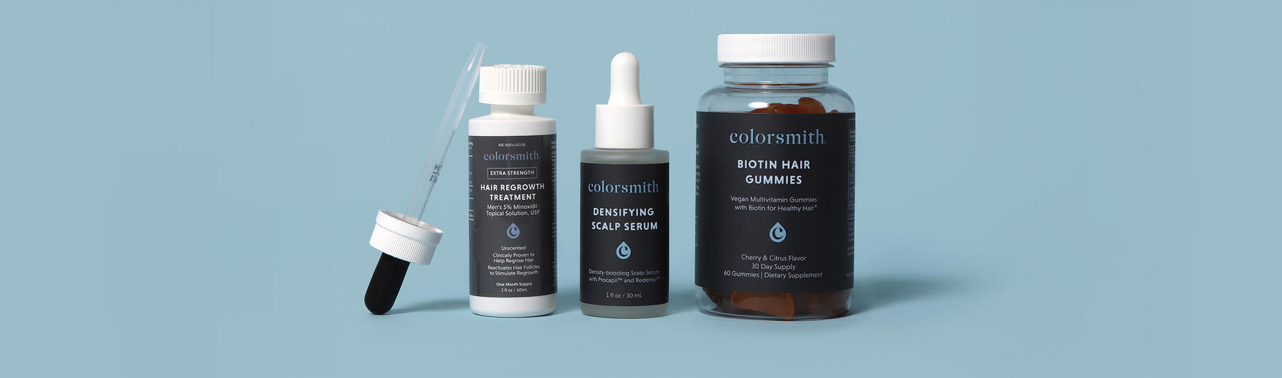 Results achieved using multiple Colorsmith hair growth products for 3+ months, including our Densifying Scalp Serum.